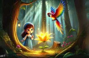 Ormanın en derin yerine ulaştıklarında, karşılarında ışıl ışıl parlayan Altın Çiçek duruyordu. Çiçek o kadar parlaktı ki, etrafı aydınlatıyordu.